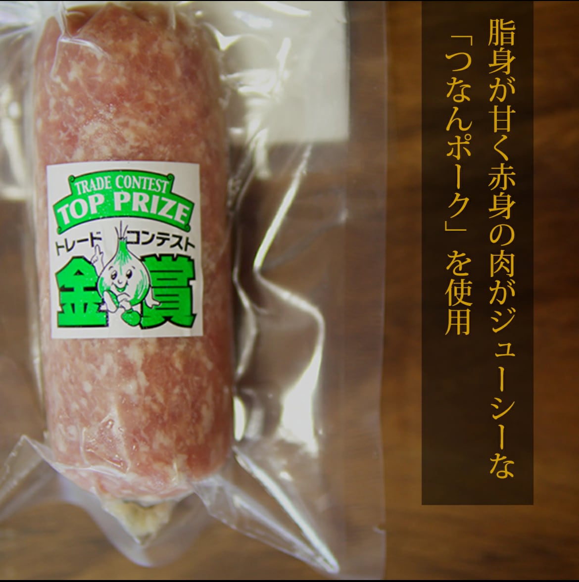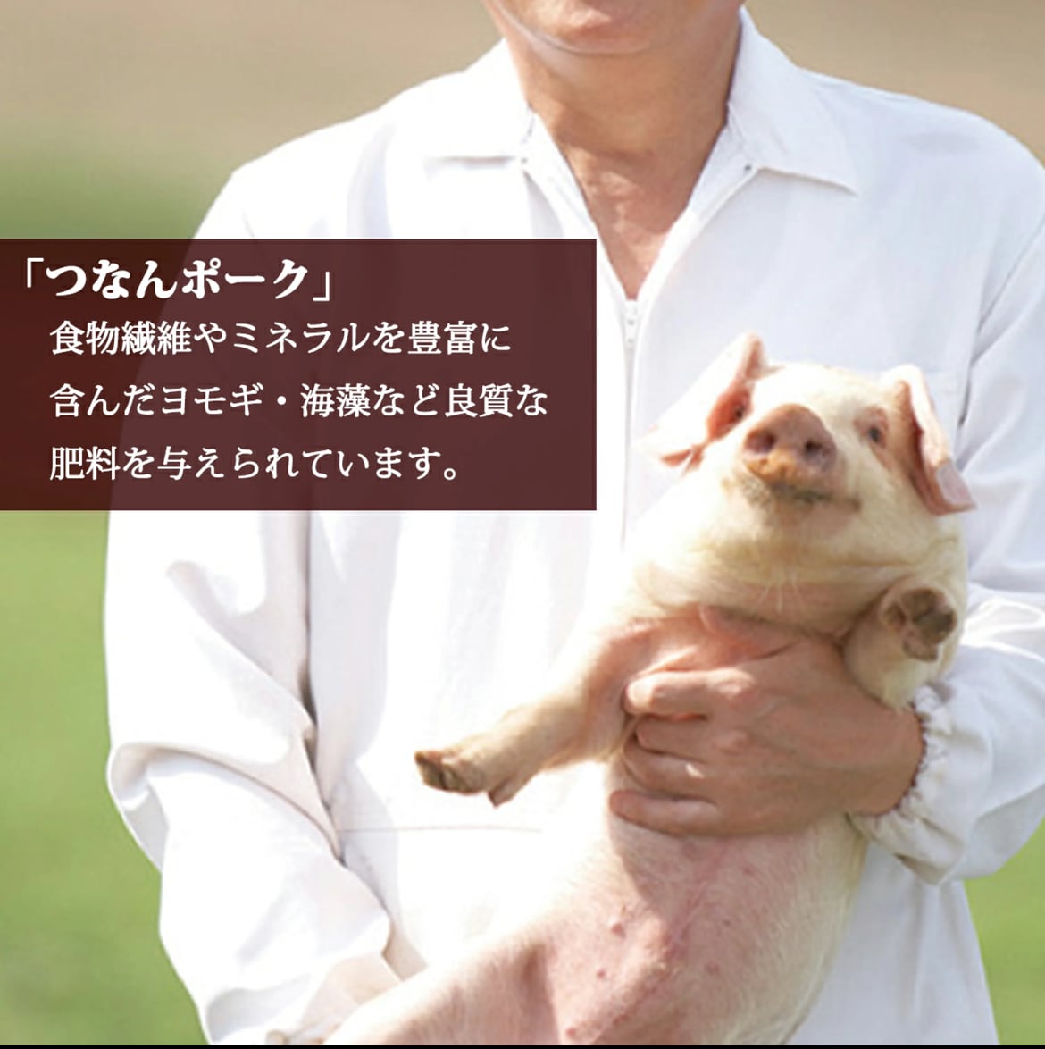 原料豚の「つなんポーク」は食物繊維やミネラルを豊富に含んだヨモギ・海藻など良質な飼料を与えられているため、クセのないまろやかな味わいで、業界では美味しい豚の代名詞として知られています。