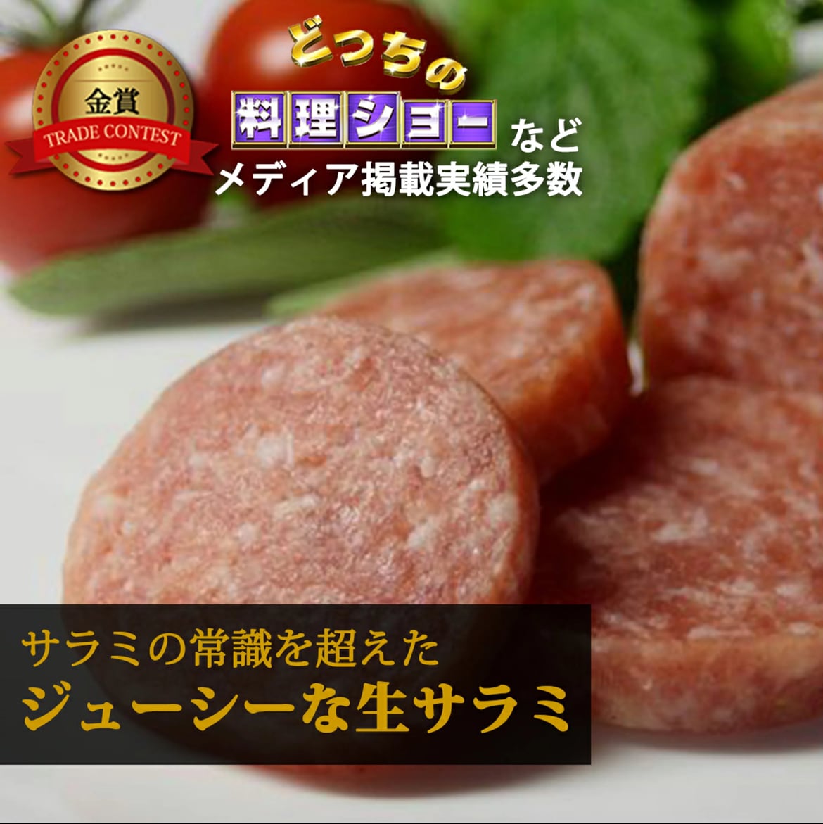 一般的なサラミは菌の発生を防ぐためにお肉が固くなるまで乾燥させますが、たまとろサラミはできるだけ水分を保ちつつ、菌の増殖の原因となる自由水の含水率を下げる特殊な技術を用いています。生サラミのフレッシュでみずみずしい食感をご堪能ください。